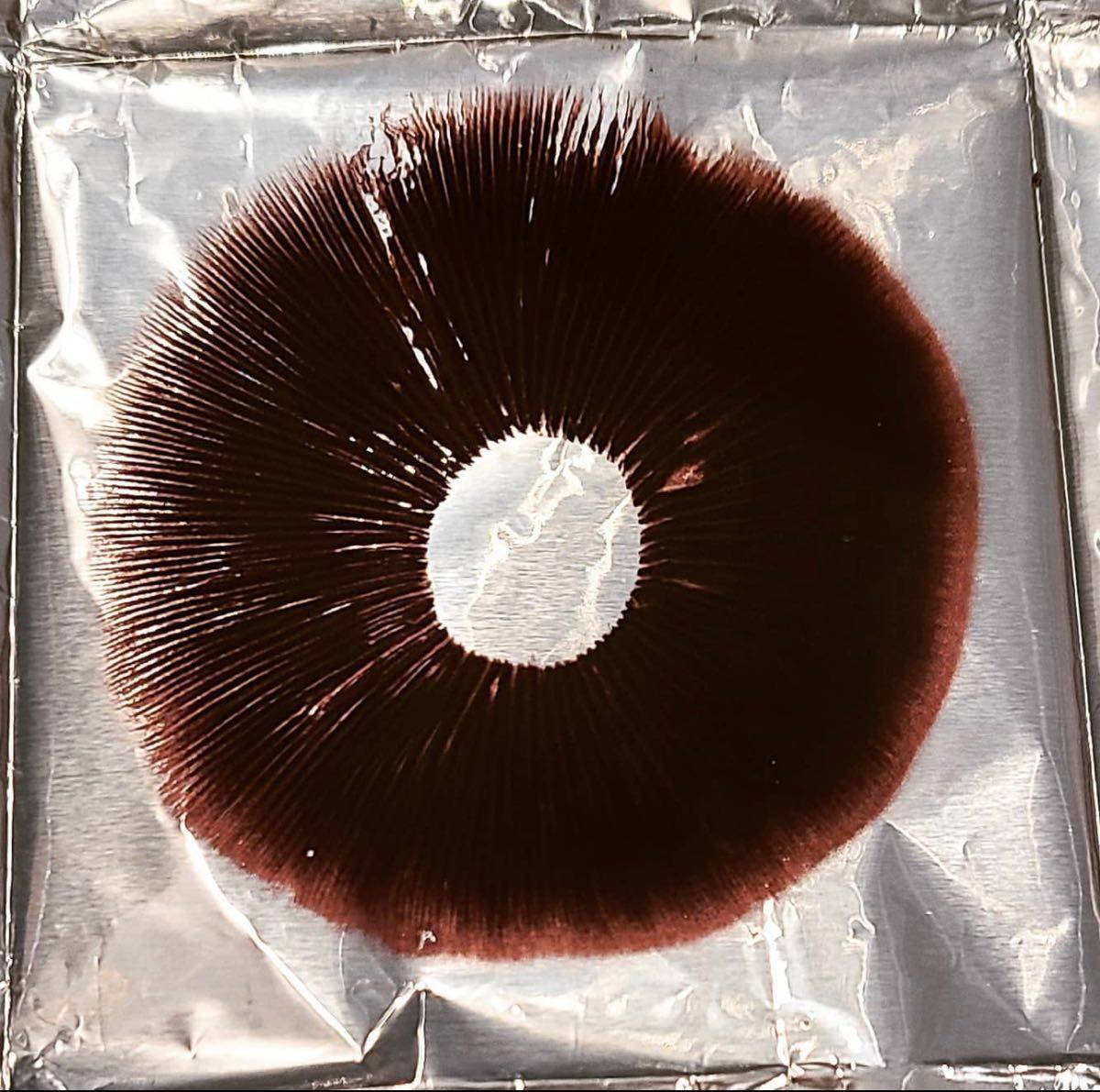 The spore print is the powdery deposit obtained by allowing spores of a fungal fruit body to fall onto a surface underneath. It is an important diagnostic character in most handbooks for identifying mushrooms. It shows the color of the mushroom spores if viewed en masse. Method A spore print is made by placing the spore-producing surface flat on a sheet of dark and white paper or on a sheet of clear, stiff plastic, which facilitates moving the spore print to a darker or lighter surface for improved contrast; for example, it is easier to determine whether the spore print is pure white or, rather, very slightly pigmented. The mushroom is left for several hours, often overnight, in this manner. Some guides advise using a moisture-resistant enclosure, like a glass or jar, to contain the mushroom during printing. If the mushroom is to be preserved, a small hole can be made in the spore print paper rather than cutting the stipe. When the mushroom is removed, the colour of the spores should be visible. Mycologists often use glass slides, which allow for quick examination of spores under a microscope. A mushroom cannot be identified from its spore print alone; the spore print is only one characteristic used in making a taxonomic determination. Spore prints are usually white to cream, black, or shades of red, purple, or brown. The poisonous false parasol (Chlorophyllum molybdites) has a green spore deposit. Although the spore print is generally used to help identify the genus of a specimen, on occasion it can be used to help distinguish between similar species. For example, the lookalikes Russula crustosa and Russula virescens have yellowish and white spore deposits, respectively. In the field, spore print colour can sometimes be quickly determined by examining the top of stipes for spore “dust” on the nearby forest floor. The spore print is not always successful, as some mushrooms are too young or old to produce spores. Mushrooms collected at high elevations will typically not produce a spore print at lower elevations. Sometimes, the colour can vary depending on the thickness of the spore print. In the genus Lactarius, thin deposits are usually white, while thick deposits are cream to yellow. Many of the original authors of species in this genus did not indicate whether spore print colours they recorded were with thick or thin prints, limiting the usefulness of this feature as an identification characteristic. In some instances, the colour of the spore print matches that of the mature gills, but this is not always true and gill colour cannot reliably be used as an indicator of spore print colour. Importance Historically the classification of many families of fungi were based on spore colour, a feature first systematically emphasized by Swedish mycologist Elias Fries. An example is the Tricholomataceae, a large family containing many fungi whose common factor was having white spores. However recent molecular research has shown some strange relationships, with some fungi of disparate spore colours showing close relations.