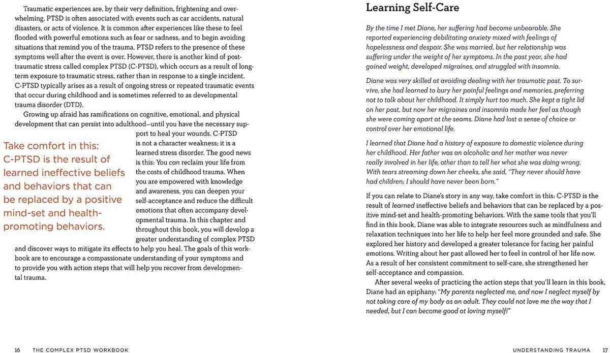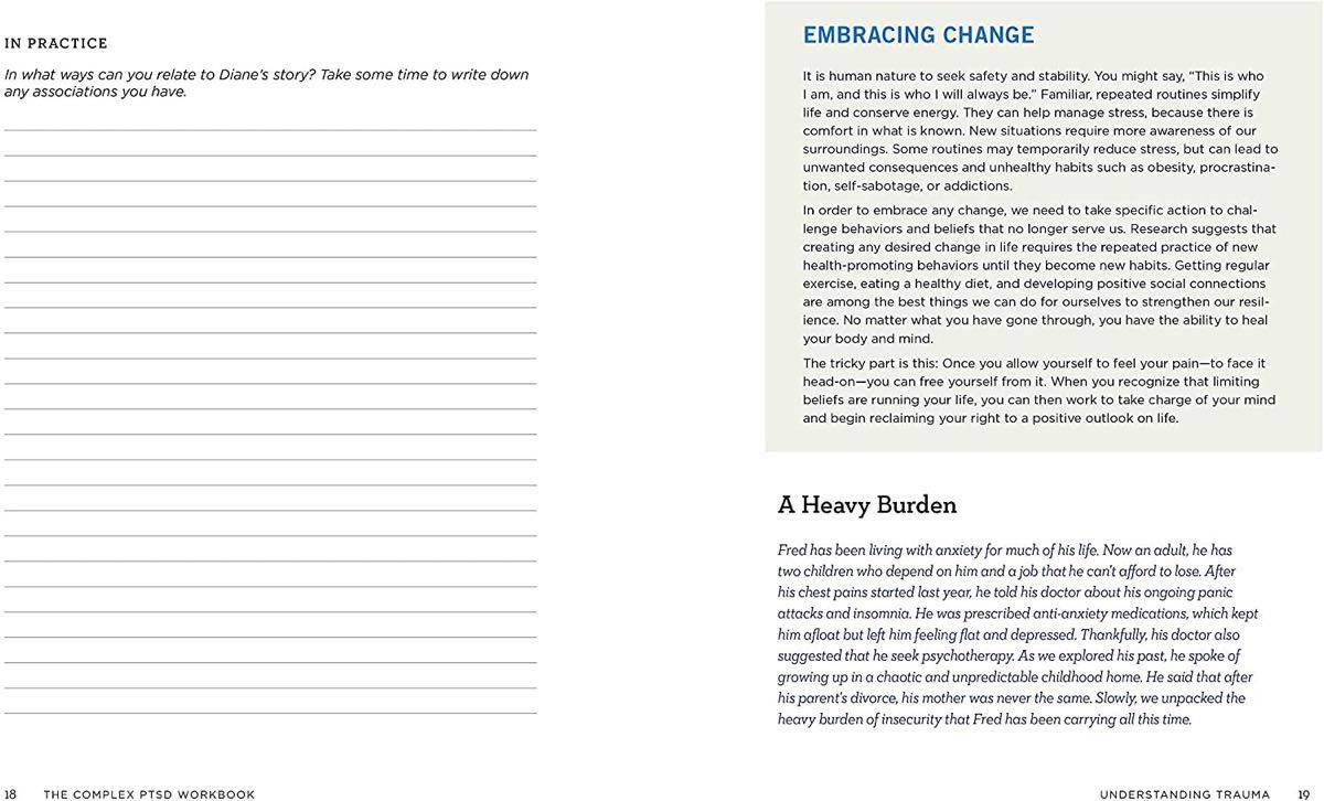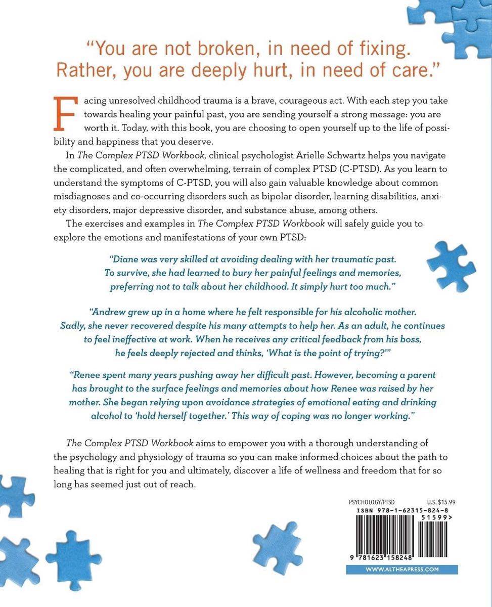 A mind-body workbook for healing and overcoming Complex PTSD Those affected by complex PTSD, or C-PTSD, commonly feel as though there is something fundamentally wrong with themโthat somewhere inside there is a part of them that needs to be fixed. Facing oneโs PTSD is a brave, courageous actโand with the right guidance, recovery is possible. In The Complex PTSD Workbook, youโll learn all about C-PTSD and gain valuable insight into the types of symptoms associated with unresolved childhood trauma. Take healing into your own hands while applying strategies to help integrate positive beliefs and behaviors. Discover your path to recovery with: Examples and exercisesโUncover your own instances of trauma with PTSD activities designed to teach you positive strategies. Expert guidanceโExplore common PTSD diagnoses and common methods of PTSD therapy including somatic therapy, CBT, and mind-body perspectives. Prompts and reflectionsโApply the strategies youโve learned and identify PTSD symptoms with insightful writing prompts. Find the tools you need to work through C-PTSD and regain emotional control with this mind-body workbook.